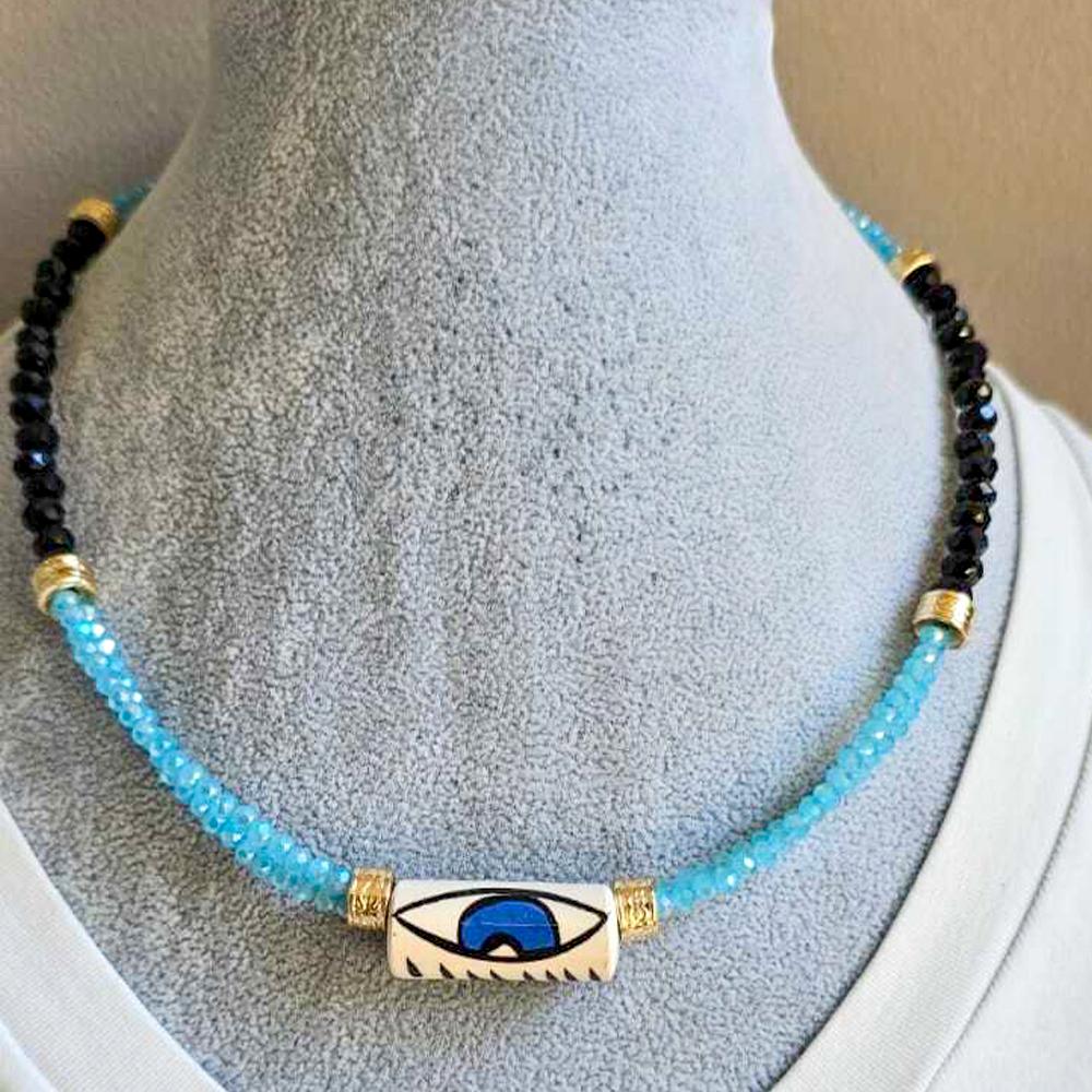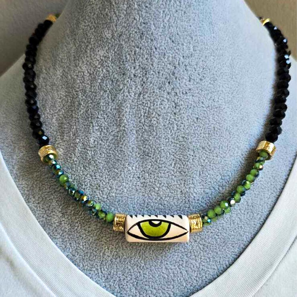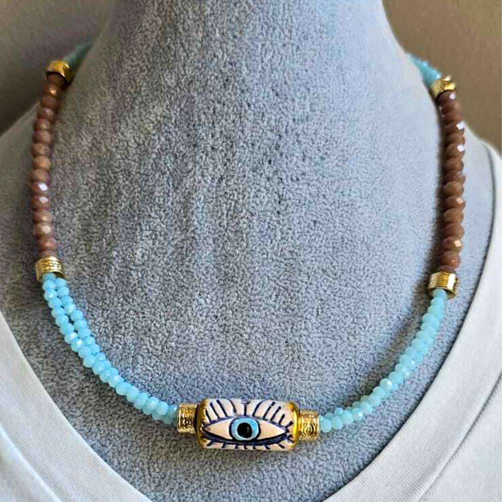 Seramik Göz Uçlu Kristal Kolye, zarif tasarımı ve anlamlı sembolizmiyle dikkat çeker. Seramik göz ucu, nazara karşı koruma sağlarken, kristal detaylar kolyeye şıklık ve zarafet katmaktadır. Hem modern hem de geleneksel bir dokunuş sunan bu kolye, her tarzda kıyafetle kolayca kombinlenebilir.