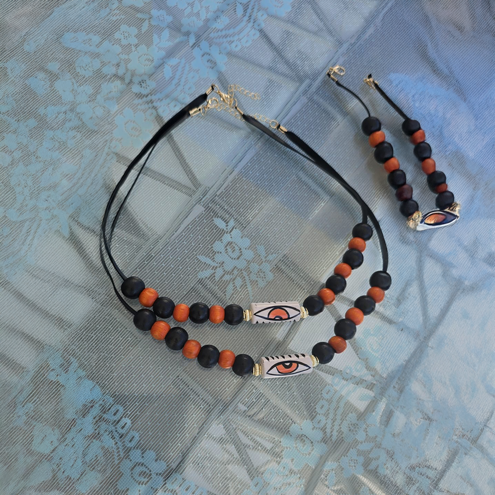•40 cm kolye ahşap boncuklu ve 2.5 cm silindir seramik kolye ucu.