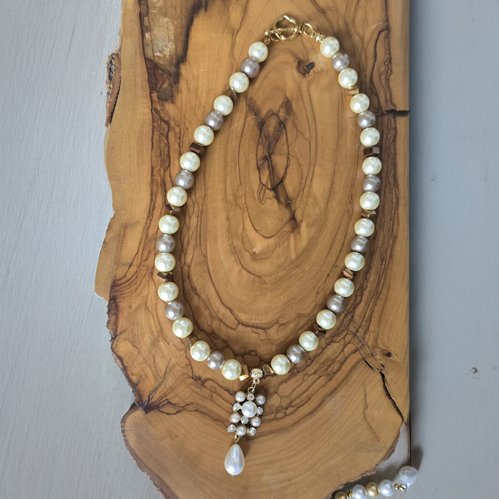 • Her bir inci ve hematit taşı özenle seçilmiş olup, kolyenin tamamında yüksek kalite ve estekik sağlar